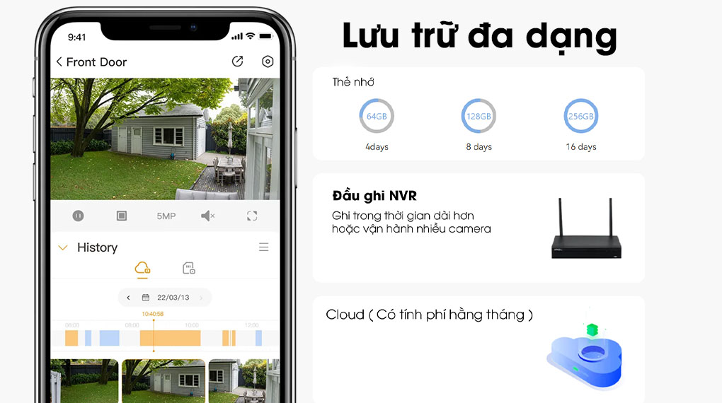 Camera 2 mắt imou IPC-S7XP-10M0WED hỗ trợ khe cắm thẻ nhớ lên đến 256GB, người dùng có thể thoải thích lưu lại hình ảnh và video. Ngoài ra, trên ứng dụng Imou life còn cho phép người dùng sử dụng dịch vụ đám mây (có tính phí). Quý khách có thể tùy ý lựa chọn chức năng lưu trữ phù hợp nhất với mình.