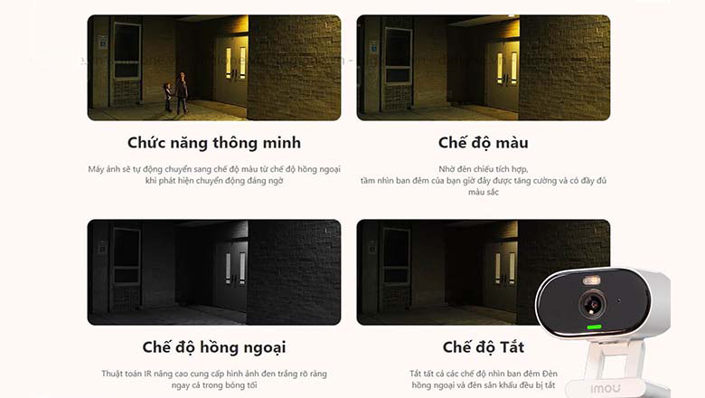 - Chế độ tắt: camera vẫn có thể hoạt động dù không bật đèn rọi hay hồng ngoại