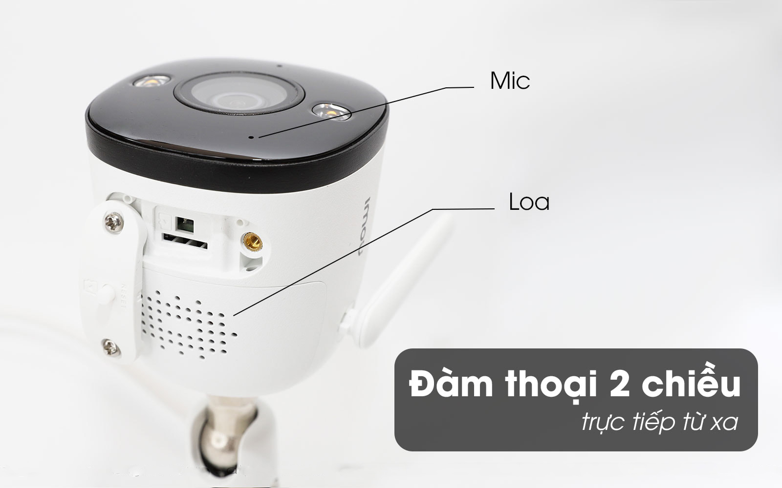 Điều làm nên sự khác biệt ở camera IMOU F42FEP so với các sản phẩm khác chính là khả năng đàm thoại 2 chiều thông minh. Trên thân camera trang bị đầy đủ cả loa và mic kết hợp công nghệ khử nhiễu thông minh cho phép bạn lắng nghe được những âm thanh trong và rõ ràng nhất.